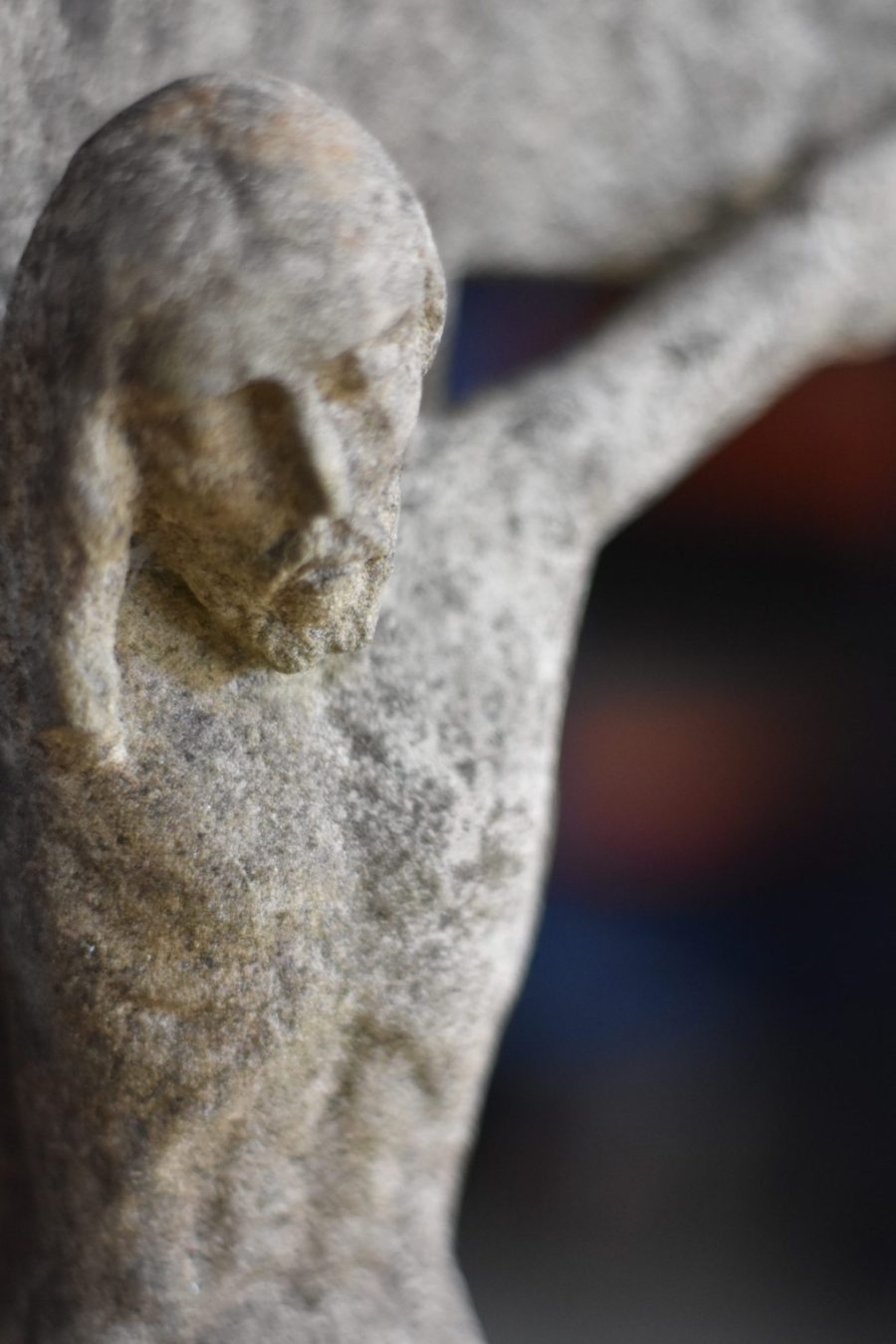 Cruz tallada en piedra natural, con acabado envejecido por la pátina del tiempo. Ideal para exteriores, se puede instalar sobre la entrada principal de una casa o en muros y cierres perimetrales. Una pieza única que aporta carácter, tradición y autenticidad arquitectónica.